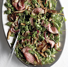 We had a relaxing mid-week dinner with our good friends Rob and Robert tonight!! Since we typically do not host our extravagant dinners during the week, we decide to make a simple (yet substantial) salad dish! We remember enjoying Thomas Keller’s “grilled steak and arugula salad with white beans and shitake mushroom” at Adhoc several years ago and we were happy to find a similar dish on the Fine Cooking website. We thoroughly enjoyed this dish with two lovely wines – Borghese “Founder’s Field” Sauvignon Blanc Long Island New York 2011 and the Grand-Puy Ducasse Pauillac Medoc 1995.